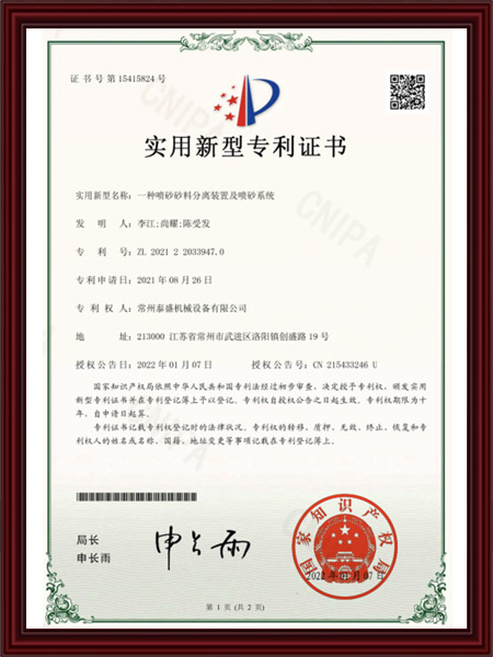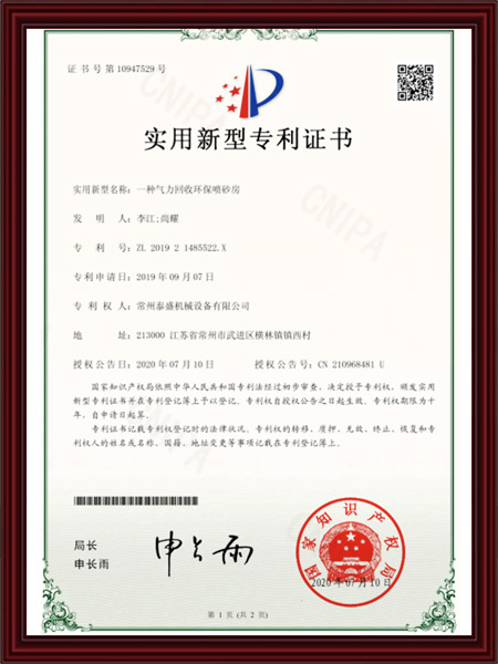 一种应用于抛丸机上的抛丸用回收处理装置证书