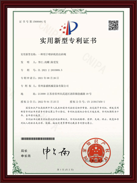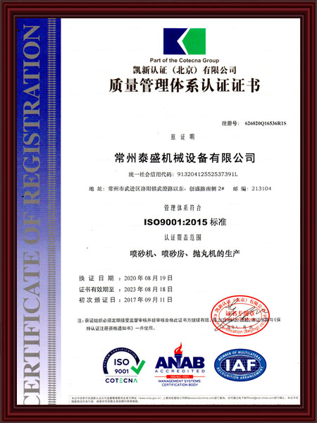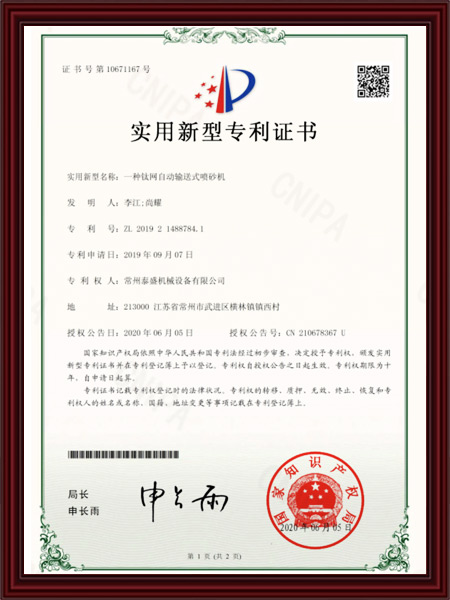 一种支撑结构和带有该支撑结构的管端螺纹喷砂机证书